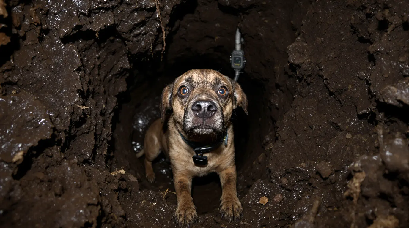 Heureusement, la chienne portait un GPS pour chien. La balise indique un arrêt prolongé, loin du chemin, dans une zone où l’on ne voit rien de l’extérieur. Le signal est clair. Tania est bloquée sous terre.